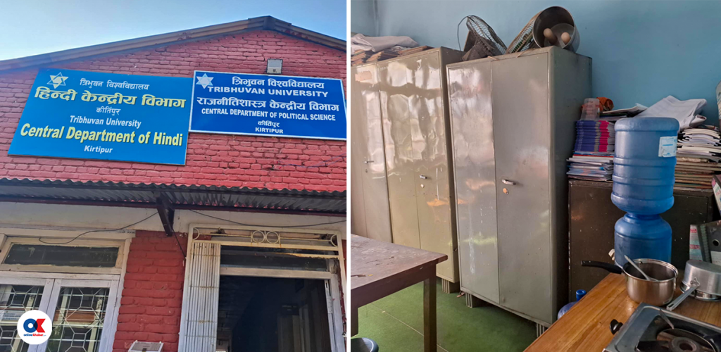१४ माघ, काठमाडौं । एउटा कोठामा तीन वटा दराज छन् । एउटा टेबलमा ग्यास चुल्हो छ । भाँडाकुँडा यत्रतत्र छन् । छेउमा केही थान किताबहरू छन् । यो त्रिविको हिन्दी विभागको लाइब्रेरी हो । अर्को कोठालाई कक्षा कोठा बनाइएको छ,...