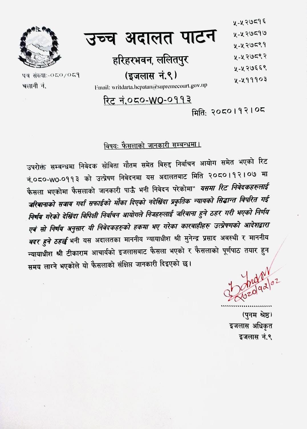 बुधबार दिउँसो सामाजिक संजालमा पोष्ट गर्दै पुर्व सांसद सोभिता गौतमले निर्वाचन आयोगले उमेद्दवार माथि नै राजनिति नगर्न ध्यानार्कषण गरेकि छिन। उनले सामाजिक संजालमा पोष्ट गर्दै लेख्छिन ” निवर्तमान प्रतिनिधी सभा सदस्यहरू म सोबिता गौतम, गणेश पराजुली, शिशिर खनाल र विराज...