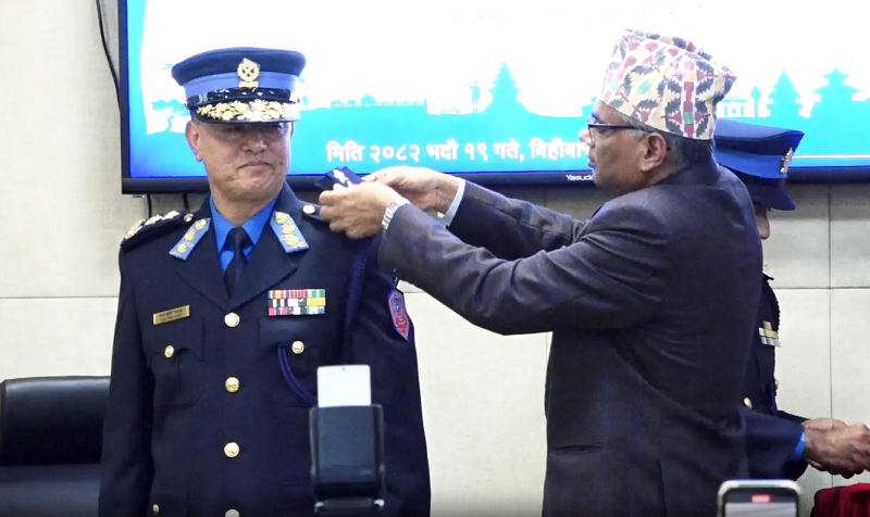 नेपाल प्रहरीका नवनियुक्त महानिरीक्षक (आईजीपी) चन्द्रकुबेर खापुङले दर्ज्यानी चिह्न लगाउनुभएको छ । यही भदौ १३ गते बसेको मन्त्रिपरिषद् बैठकले खापुङलाई भदौ १९ गतेदेखि लागू हुने गरी नेपाल प्रहरीको सर्वोच्च पदमा नियुक्त गर्ने निर्णय गरेको थियो । आईजीपी खापुङलाई आज गृह मन्त्रालयमा...