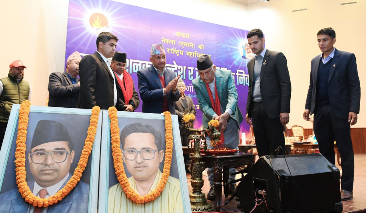 नेकपा एमालेका अध्यक्ष केपी शर्मा ओलीले एमालेले निर्वाचनबाट राष्ट्रिय फैसला दिने बताएका छन्। मंगलबार राष्ट्रिय सभा गृह प्रदर्शनीमार्गमा मदन–आश्रित स्मृति प्रतिष्ठानको विचार गोष्ठीलाई सम्बोधन गर्दै ओलीले एमालेले पार्टीको महाधिवेशन गरिसकेकाल आम निर्वाचन पर्खिरहेको बताएका हुन्। ओलीले निर्वाचन सम्पन्न नभएसम्म कुन...