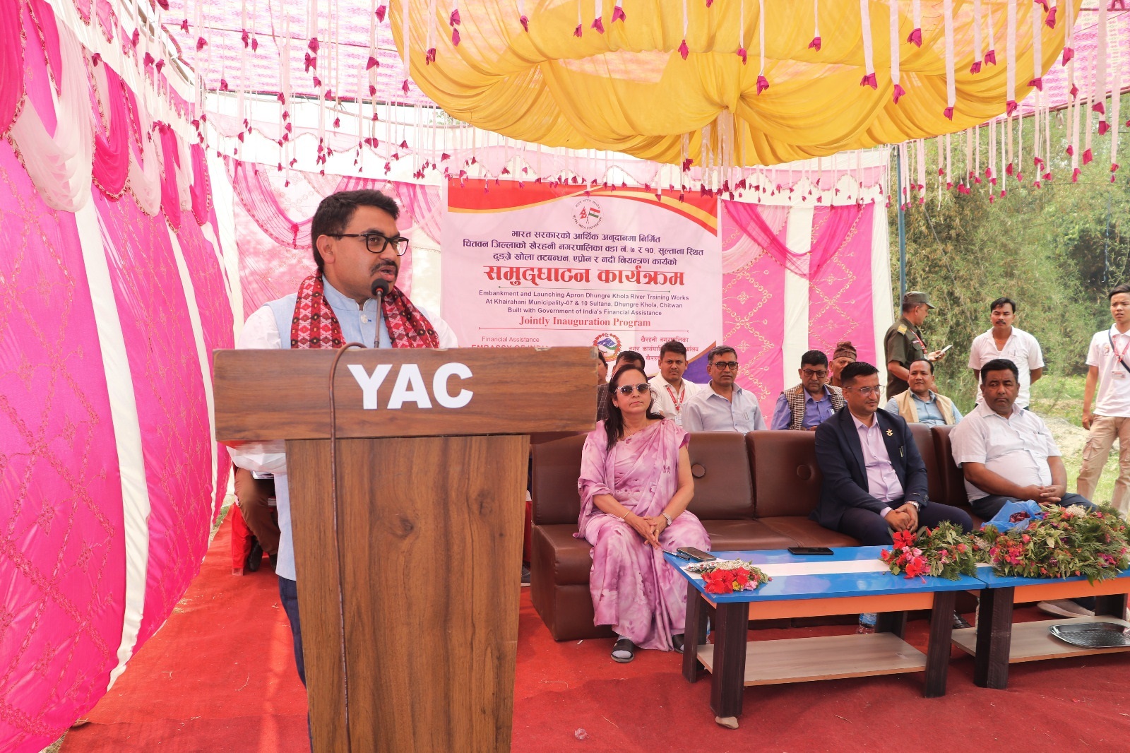 ३. कार्यक्रममा बोल्दै खैरहनी नगरपालिकाका मेयर र परियोजना उपभोक्ता समितिका प्रतिनिधिले प्राथमिकताका क्षेत्रमा नेपाली जनताको उन्नतिका लागि भारत सरकारले पुर्याउदै आएको निरन्तर विकास सहयोगको प्रशंसा गर्नुभयो ।